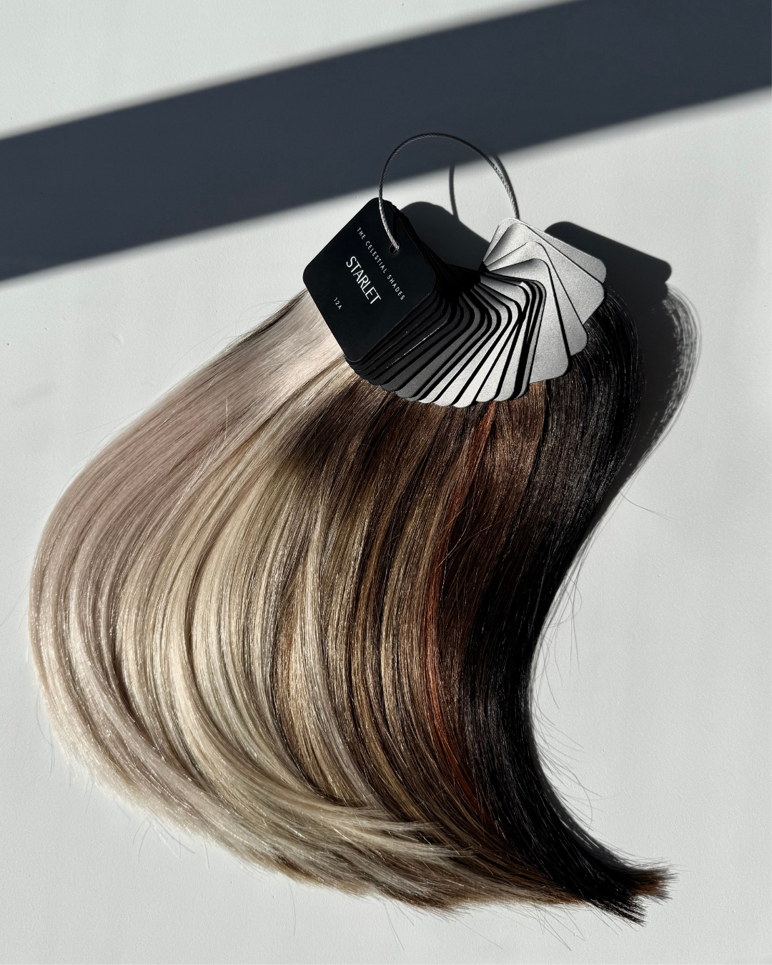Sable Luxe is a luxurious blend of cool, ashy tones with a dark blonde root. This shade transitions from a medium blonde to a light ash blonde, creating a sophisticated and modern balayage effect. It’s ideal for those who prefer a cool-toned, high-fashion look that exudes elegance and refinement.
